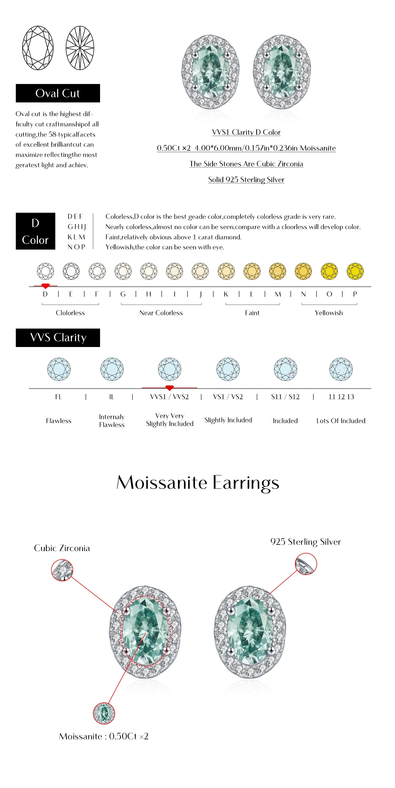 Material: 925 Sterling Silver + Moissanite