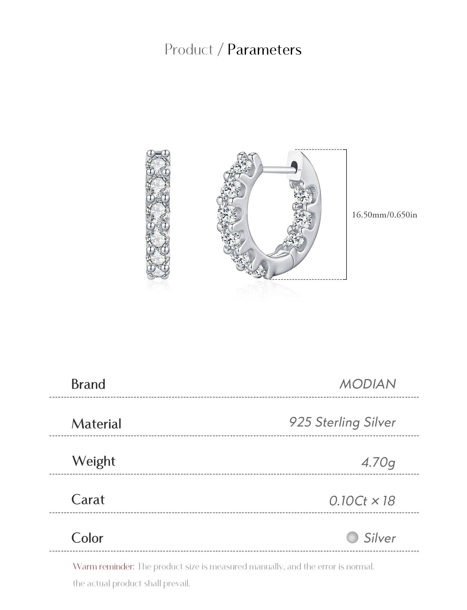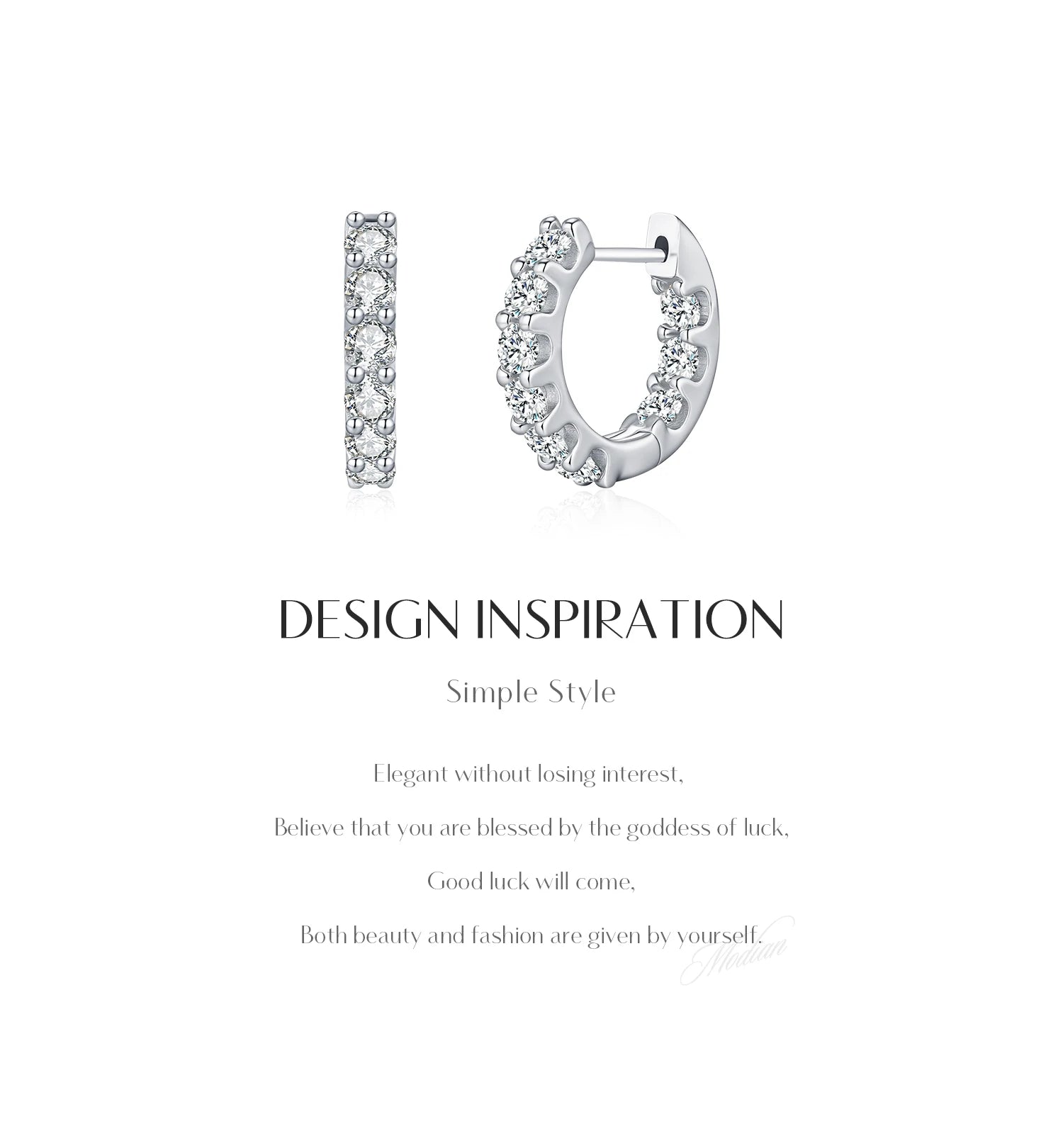 Elegant hoop earrings featuring sparkling D-color moissanite in a classic, simple round design. The harmonious shape lends the earrings timeless elegance, making them the perfect choice for parties, special occasions, or as a stylish gift. Crafted from 925 sterling silver, comfortable to wear, certified (CMA, No. M250426001201), and free of harmful chemicals.