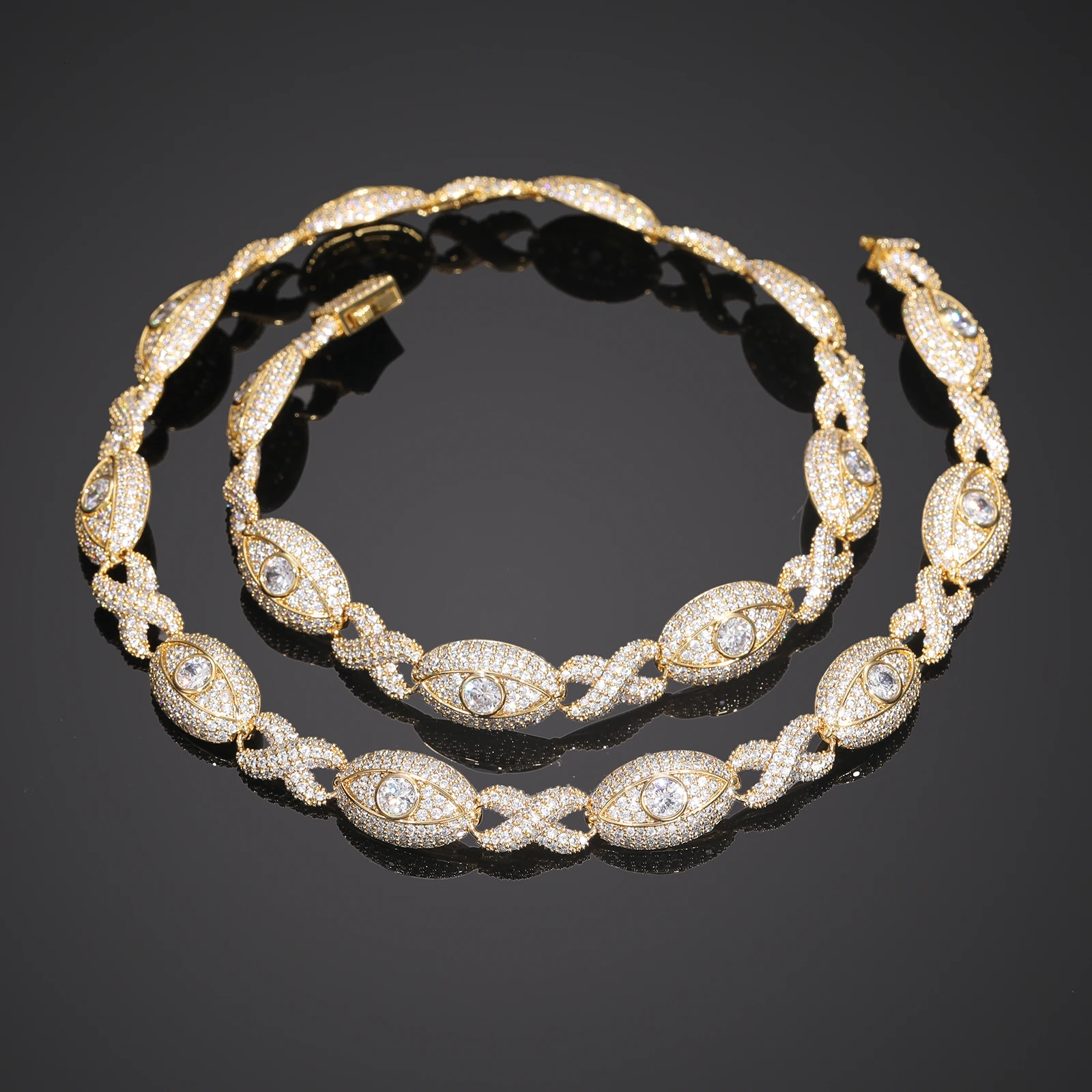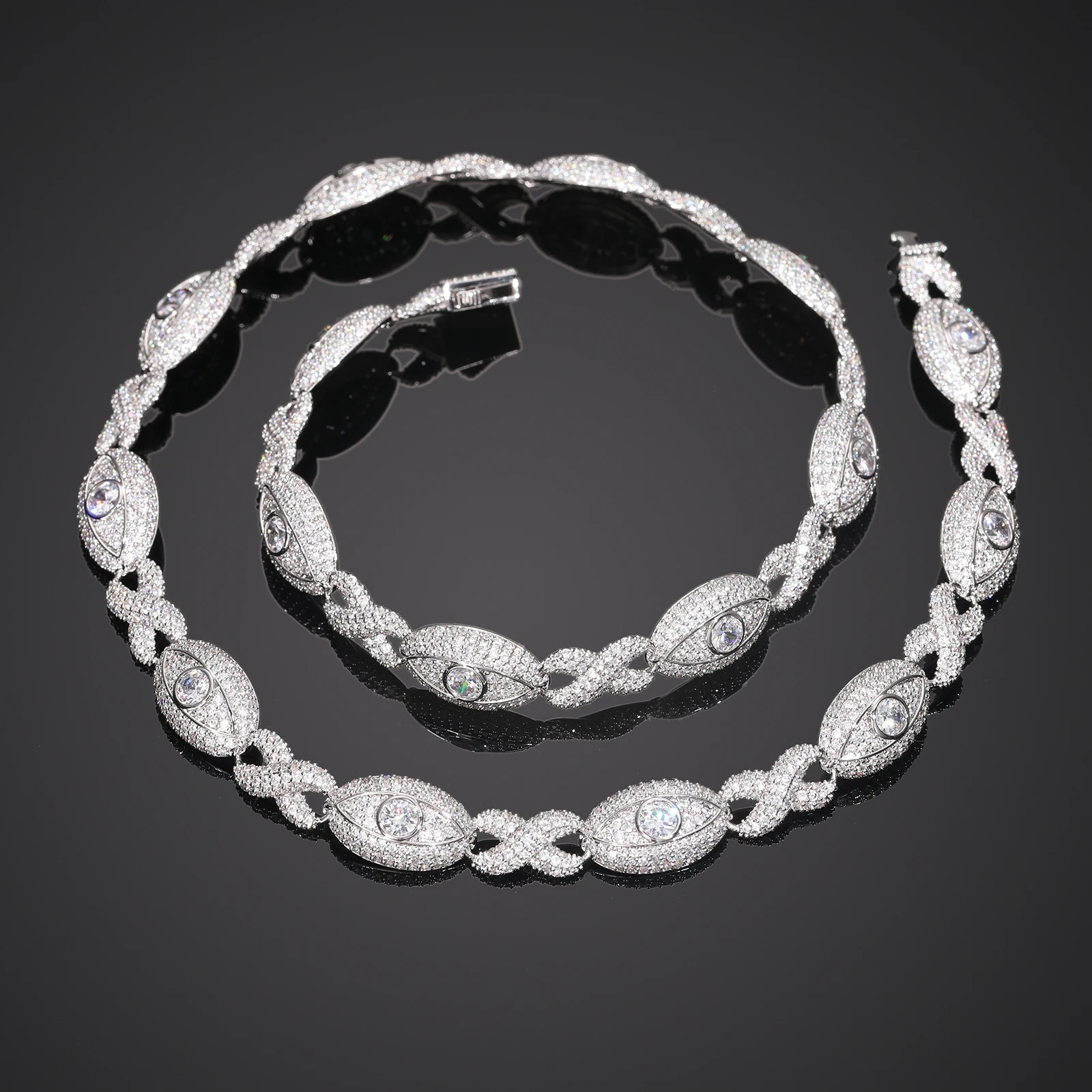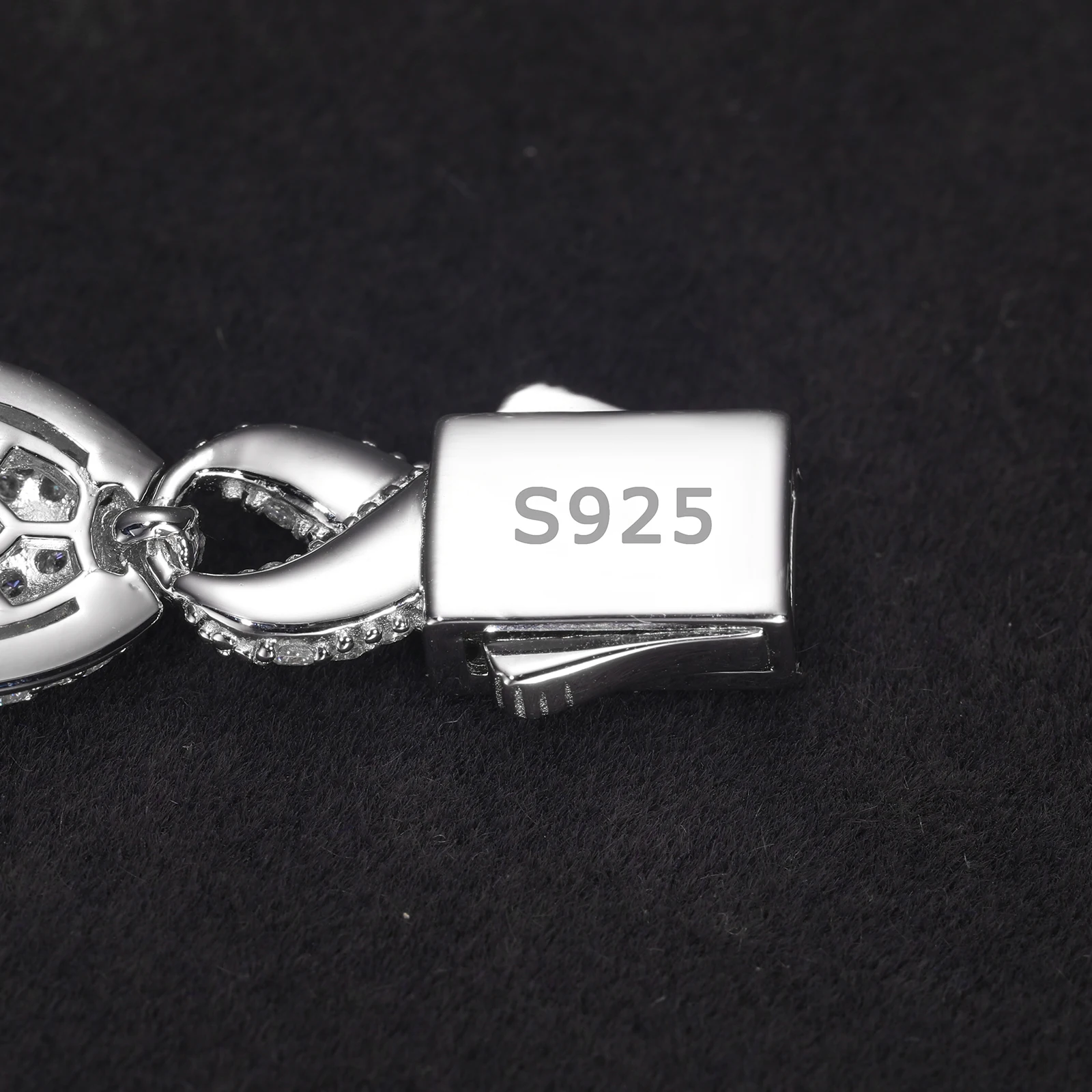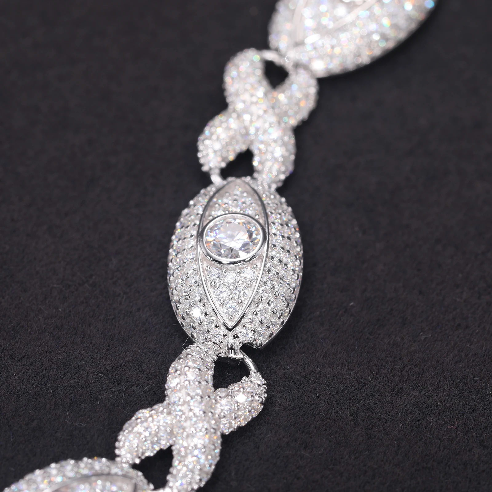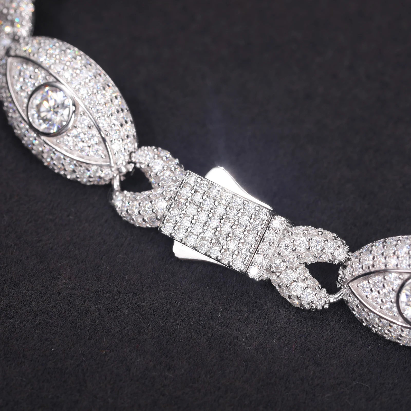 Bold, symbolic, and uncompromisingly luxurious: The Infinity Cross Ice Necklace combines powerful urban symbolism with modern hip-hop bling. The striking Cuban link design with infinity and cross elements, as well as evil eye accents, is completely set with sparkling D-Color VVS moissanite – for maximum iced-out effect.
