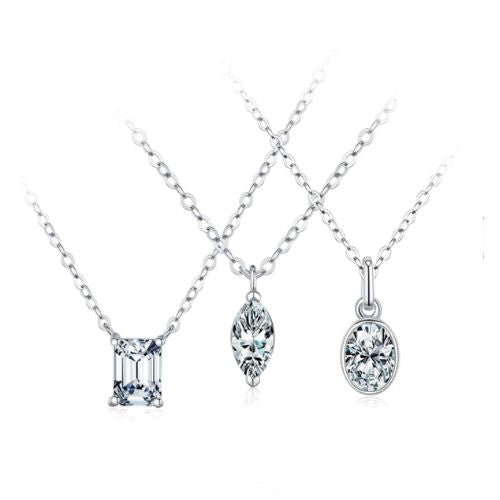 La collana è realizzata in moissanite di alta qualità e argento sterling 925. Il design geometrico garantisce una brillantezza scintillante e rende la collana un gioiello resistente.