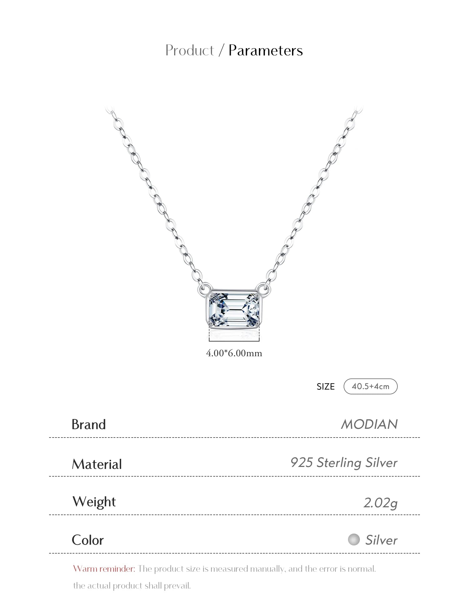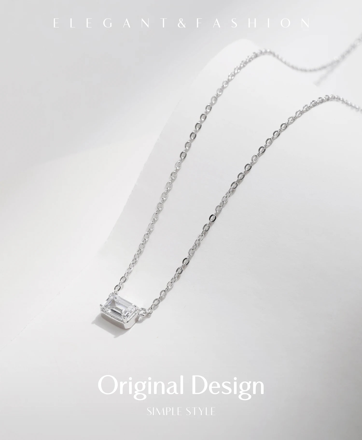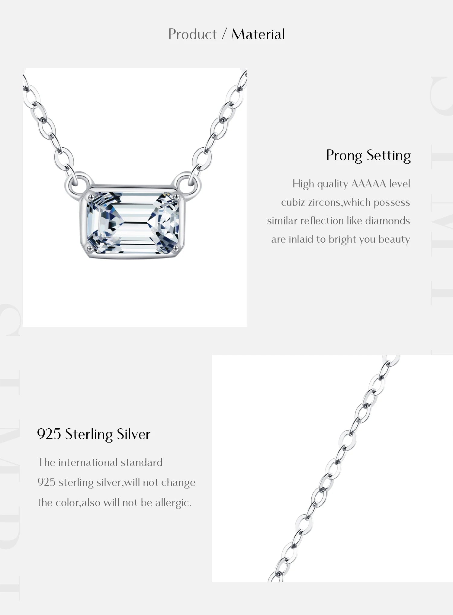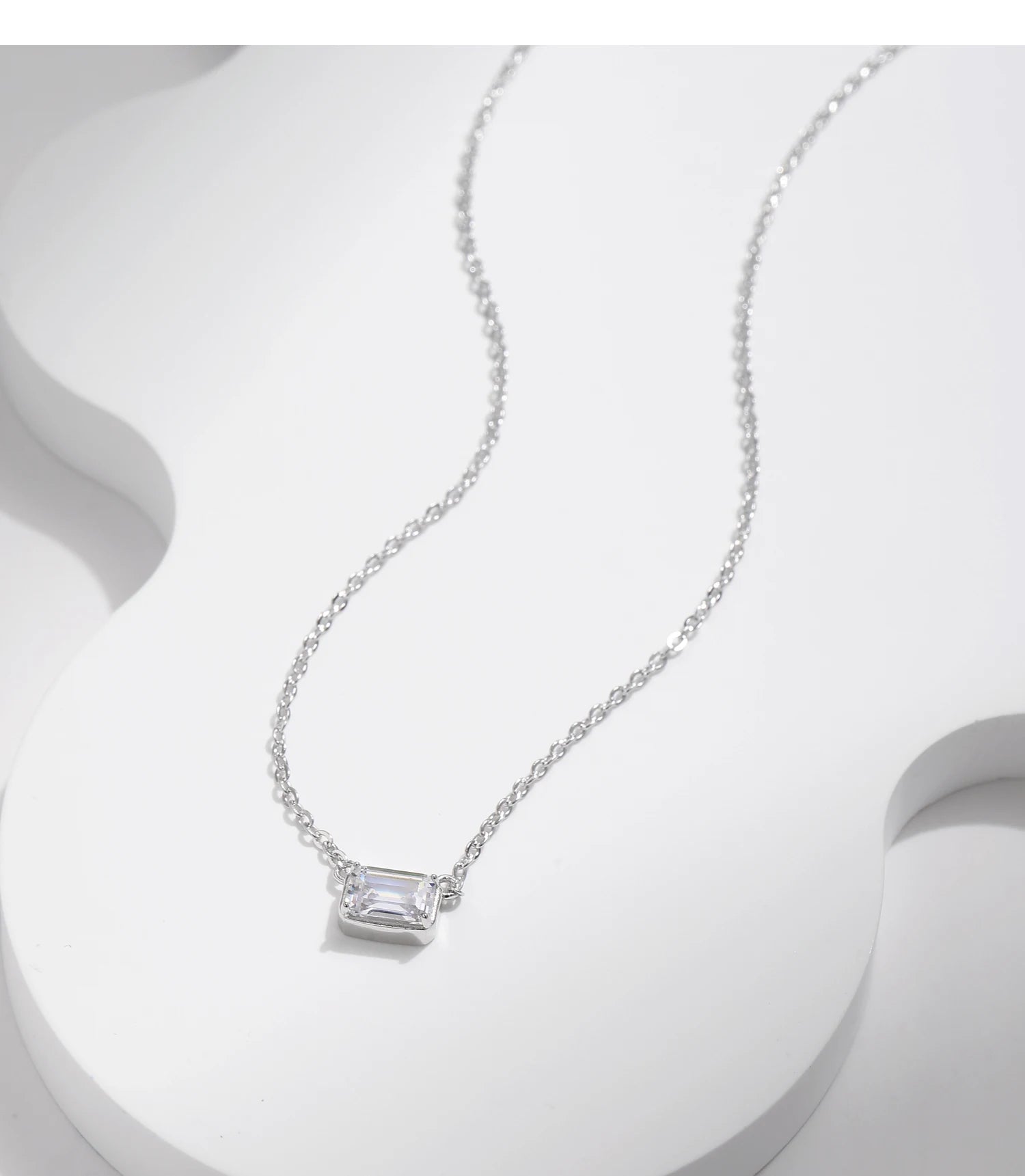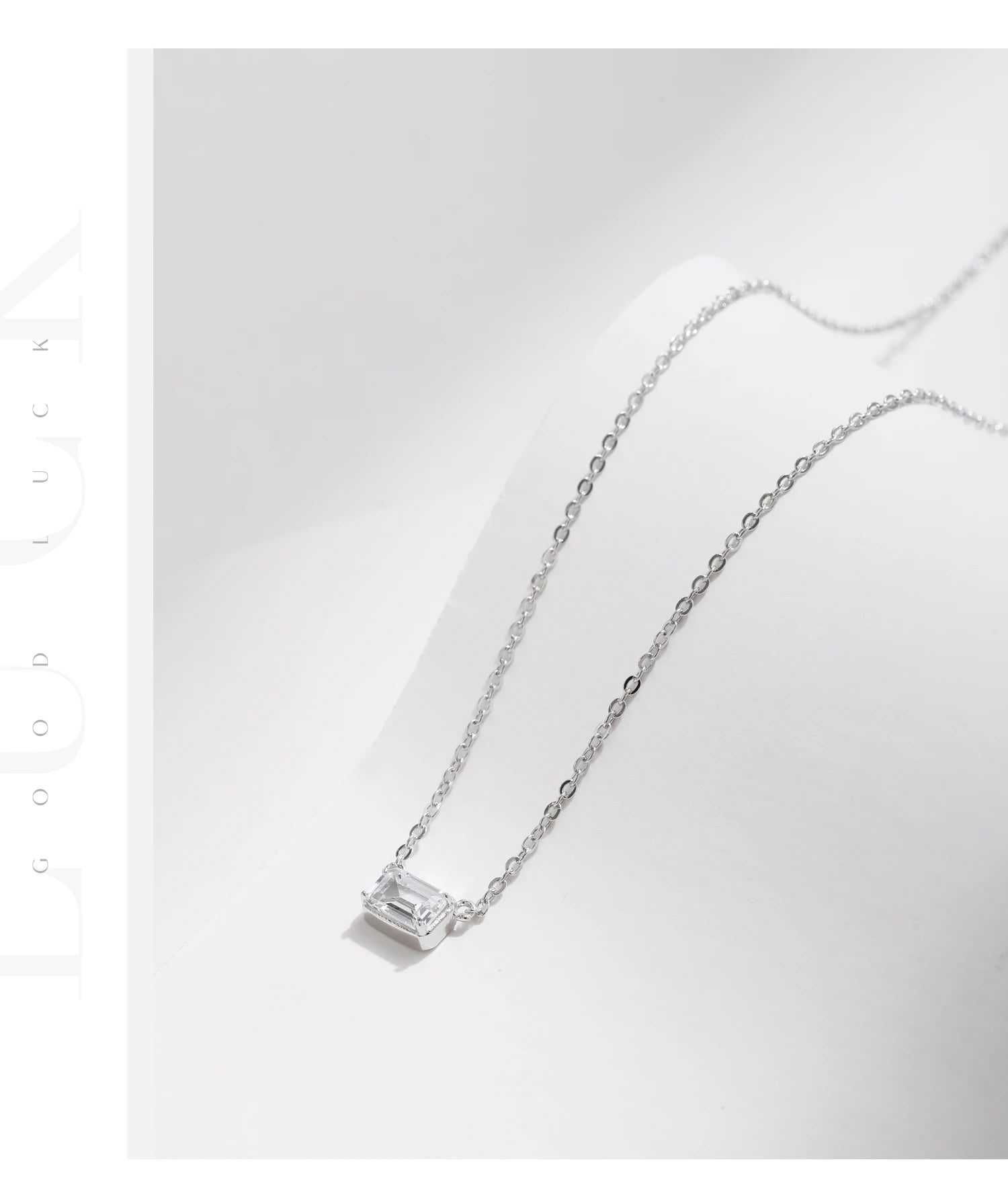 Una delicata collana con zirconia cubica rettangolare taglio smeraldo , caratterizzata da linee pulite e un'elegante brillantezza. Il design minimalista e senza tempo fonde l'eleganza classica con lo stile urbano moderno. Realizzata in argento sterling 925 , è ideale per matrimoni, feste o come tocco di classe nella vita di tutti i giorni.