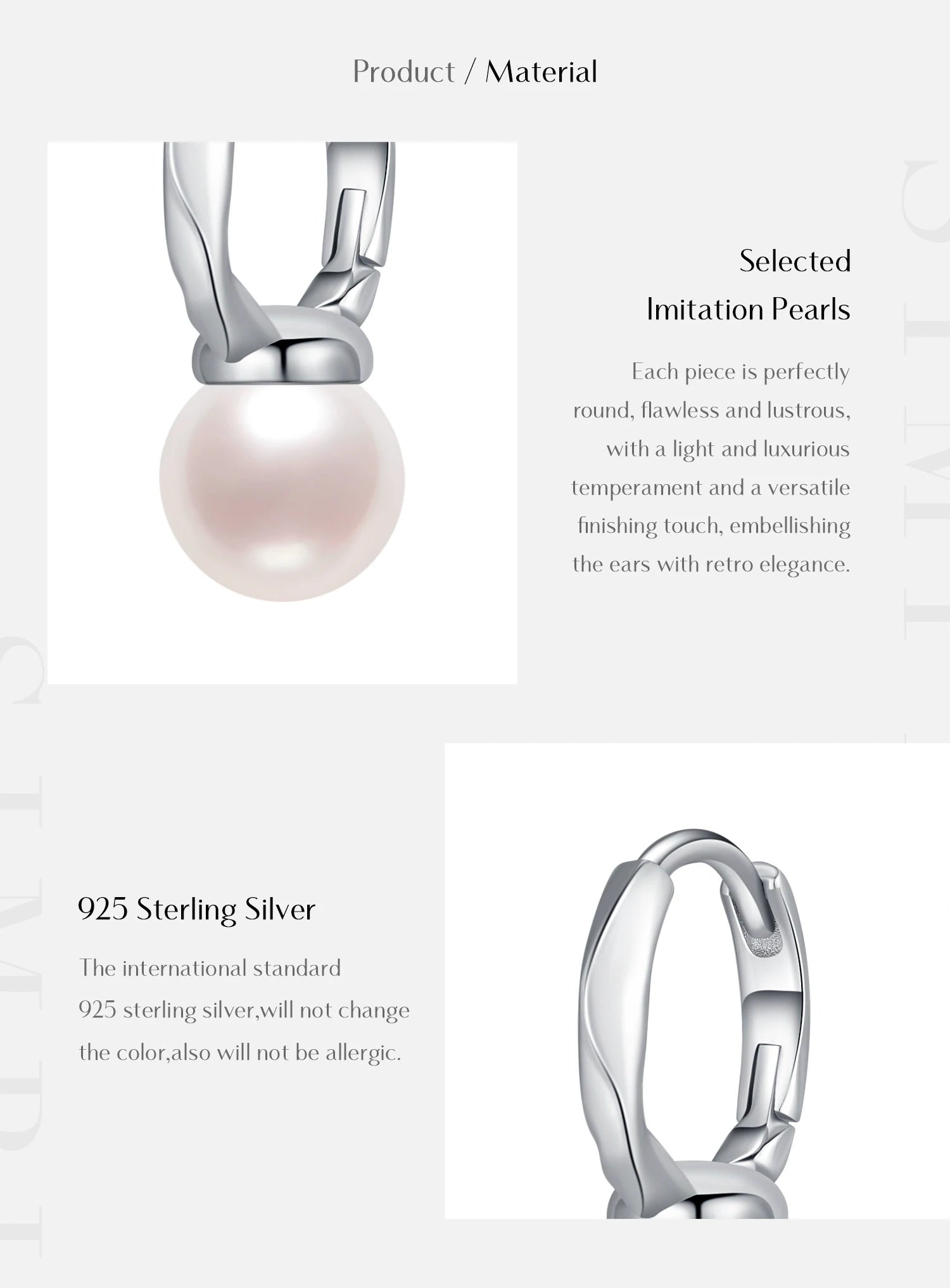 Pulire con un panno morbido per gioielli. Per preservare la lucentezza dell'argento e della perla, evitare il contatto con acqua, profumi e sostanze chimiche. Conservare separatamente.