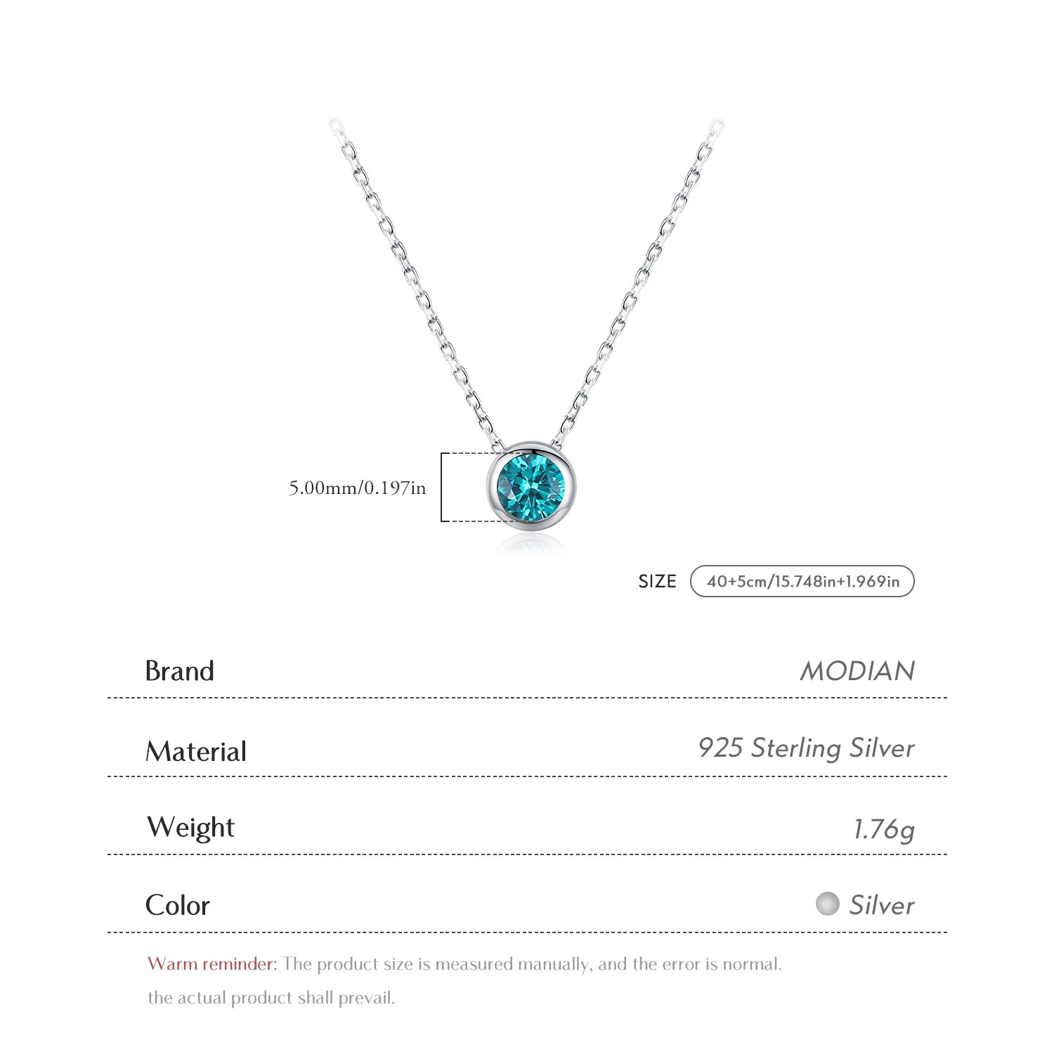 Un'elegante collana con un solitario rotondo in zirconia cubica verde acqua , che cattura immediatamente l'attenzione con il suo colore intenso e la brillantezza. Il design minimalista e urbano-lusso rende questa collana il pezzo perfetto per feste, eventi o per l'uso quotidiano . Realizzata in argento sterling 925 con finitura color oro bianco , è leggera, moderna e senza tempo.