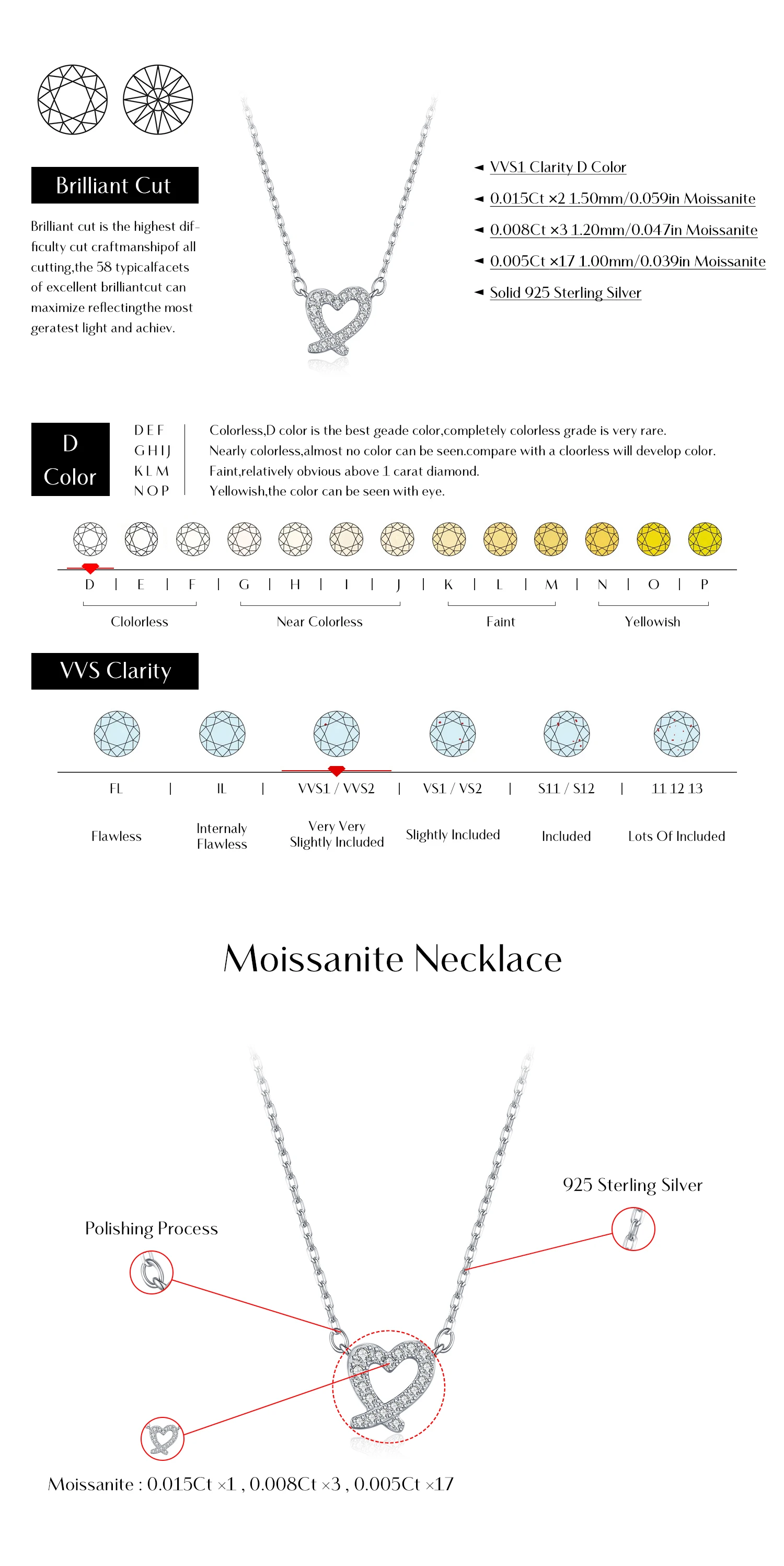 La combinazione di argento sterling 925 e pietre di moissanite VVS1 di alta qualità garantisce brillantezza, qualità e durata. Un gioiello che unisce cuore e stile.