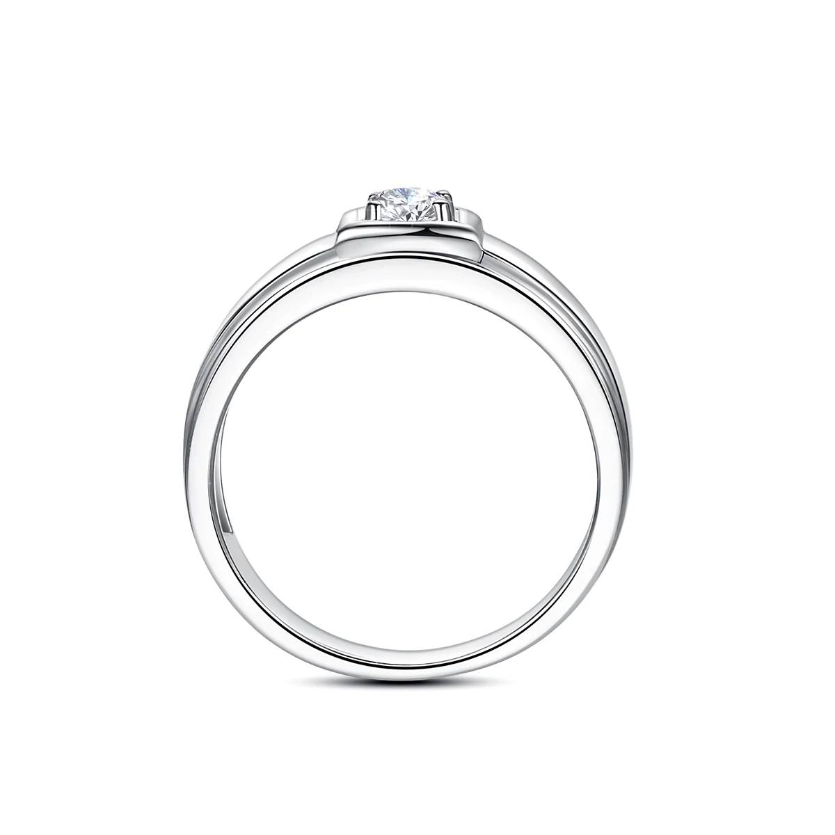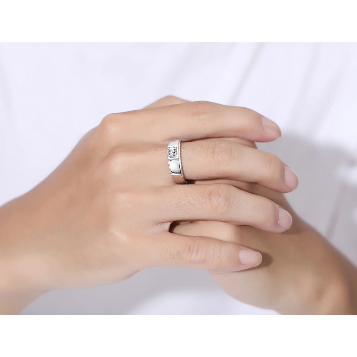 Ein kraftvoller Herrenring für Hochzeit oder Verlobung mit rundgeschliffenem Moissanit als Hauptstein. Das moderne, trendige Design mit klassischer Krappenfassung unterstreicht die maskuline Eleganz des Rings. Gefertigt aus 925 Sterling Silber mit einem angenehmen Gewicht von ca. 10 g. Zertifiziert (NGTC), frei von bedenklichen Chemikalien und ideal als luxuriöses Schmuckstück für besondere Momente und dauerhafte Versprechen.“