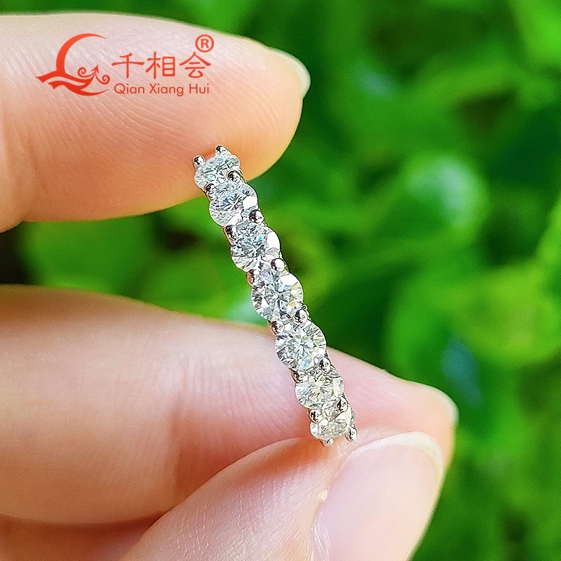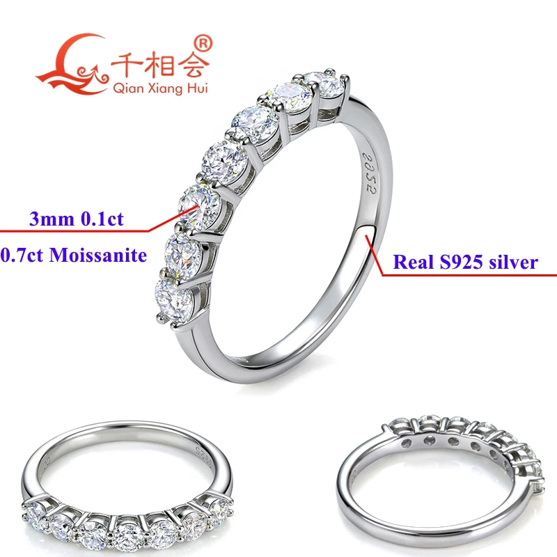 Dieser Half-Eternity-Ring ist mit sieben funkelnden Moissanit-Steinen versehen. Alle Steine sind langlebig, farbbeständig und eignen sich für täglichen Gebrauch.
