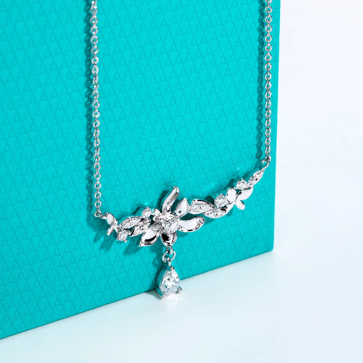 Romantisch, zart und funkelnd: Dieses elegante Orchideen-Pendant vereint einen 0.97cttw Moissanite in einem verspielten Blumen-Design mit einer feinen 925 Sterling Silber Kette. Ideal für Valentinstag, Jubiläen oder als stilvolles Geschenk – das zarte Clavicle-Design setzt jeden Look glanzvoll in Szene.