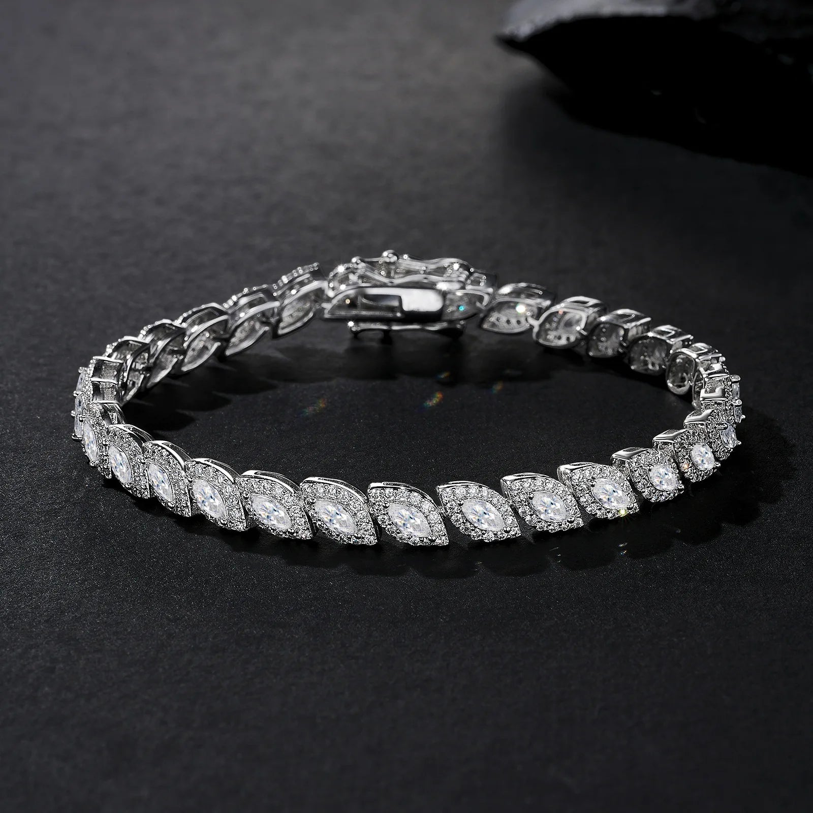 Das Armband besteht aus hochwertigem Moissanit mit hoher Brillanz und ausgezeichneter Haltbarkeit. Die präzise Verarbeitung sorgt für sicheren Sitz der Steine und langanhaltenden Glanz.