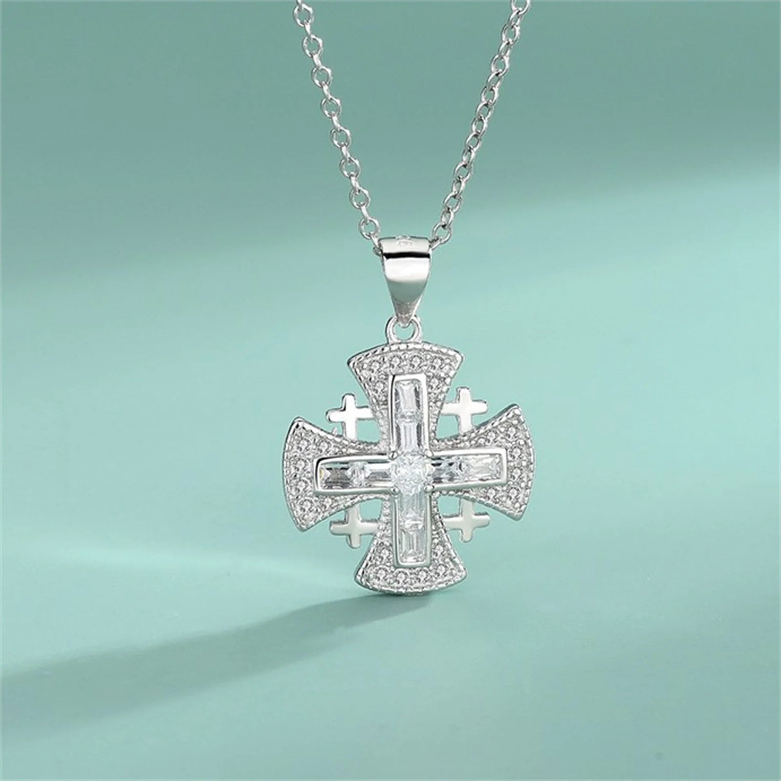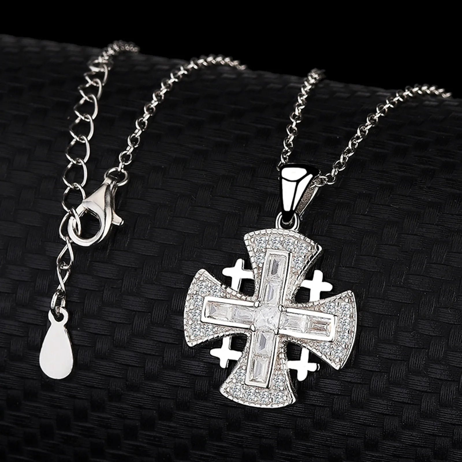 925 Sterling Silver Jerusalem Cross Pendant – Vintage Crusader Necklace for Women & Girls | Georgian Emblem Jewelry