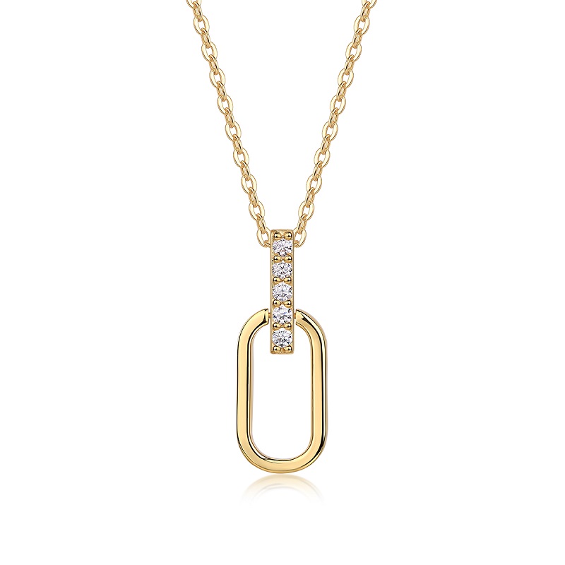 Elegante und modische Halskette aus S925 Sterling Silber mit funkelnden Moissanite-Steinen (<0,1 Karat pro Stein) und edler Goldplattierung. Leichtes, modernes Design für Alltag, besondere Anlässe oder als stilvolles Geschenk. Länge: 40 cm, Gewicht: 3,4 g. Inklusive GRA-Zertifikat.