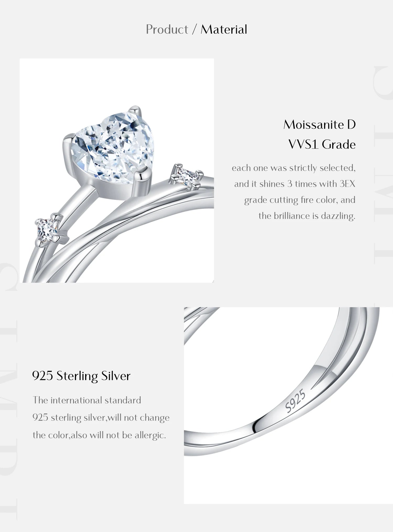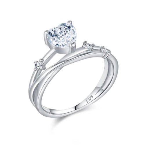 Romantischer Damenring mit funkelndem D-Color Moissanit (0,8 ct) in Herzform, gestaltet als mehrlagiger Linienring. Das klassische Design verleiht dem Ring zeitlose Eleganz und macht ihn zur perfekten Wahl für Hochzeiten, Verlobungen oder als romantisches Geschenk. Gefertigt aus 925 Sterling Silber, leicht und angenehm zu tragen, zertifiziert (CMA, Nr. M250426001228) und frei von bedenklichen Chemikalien.