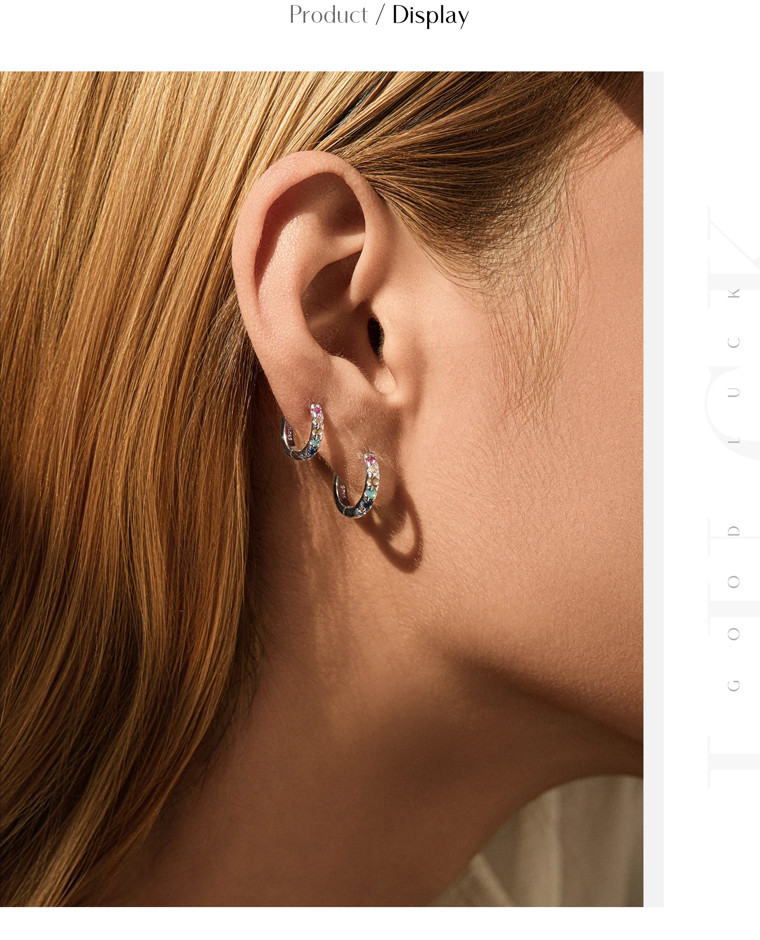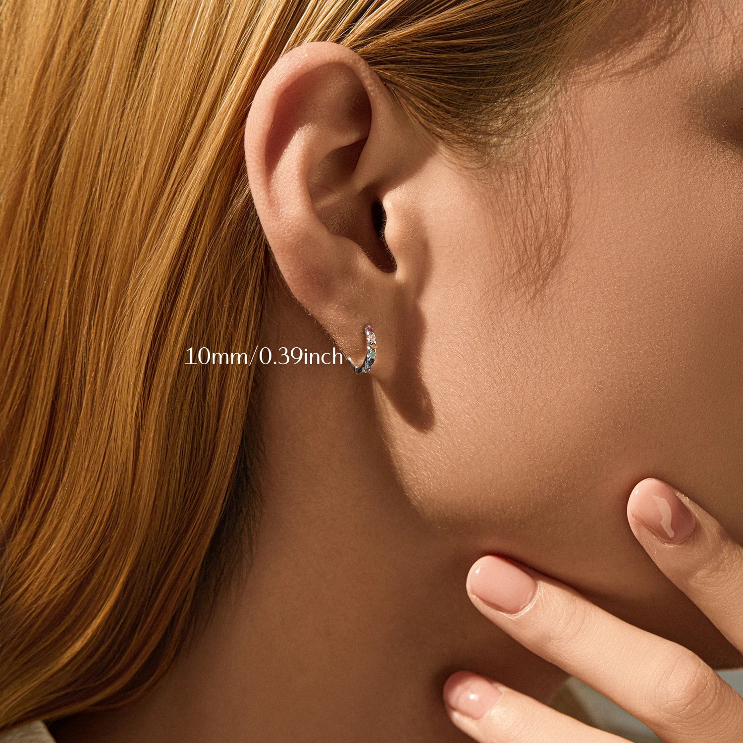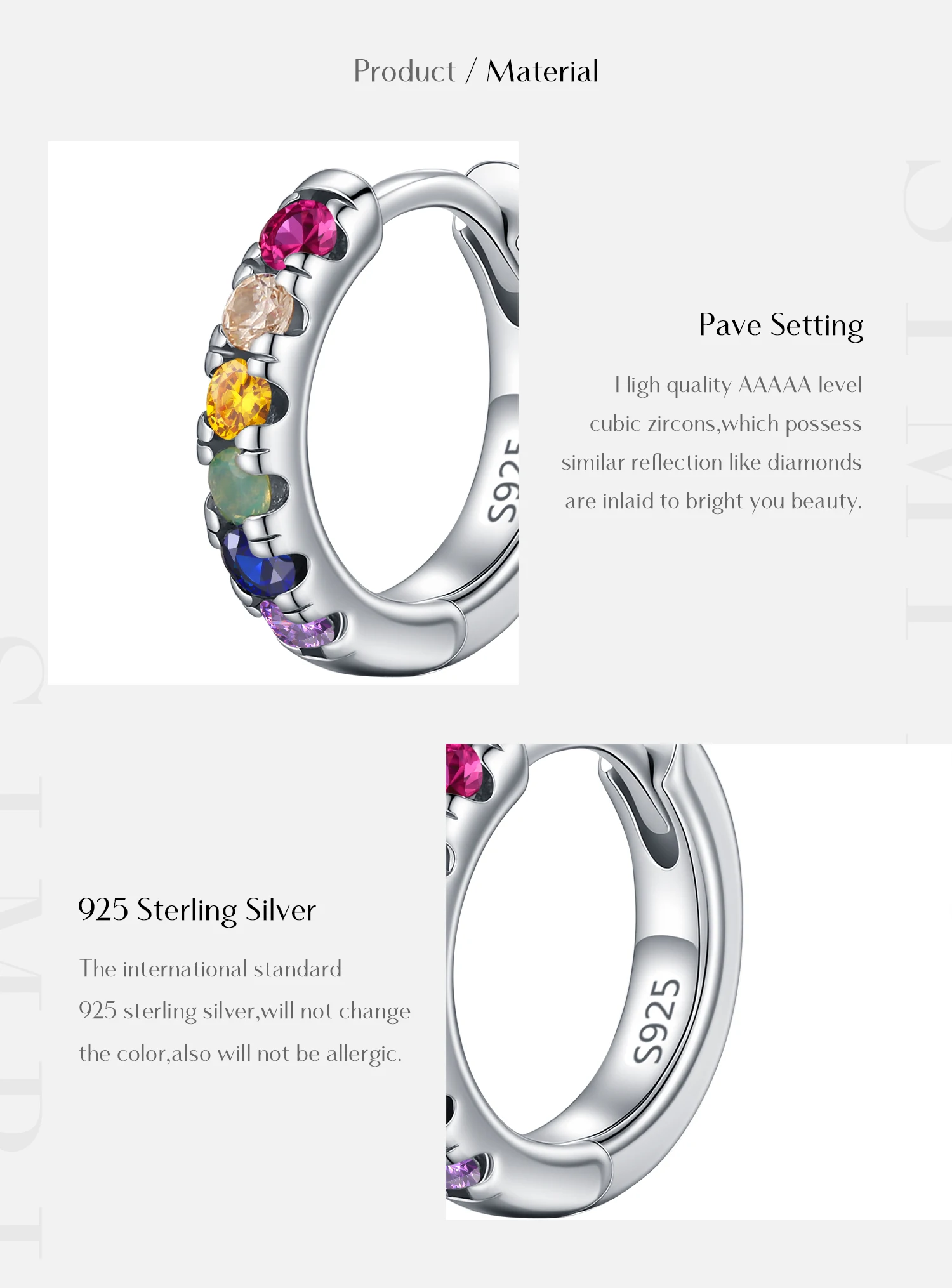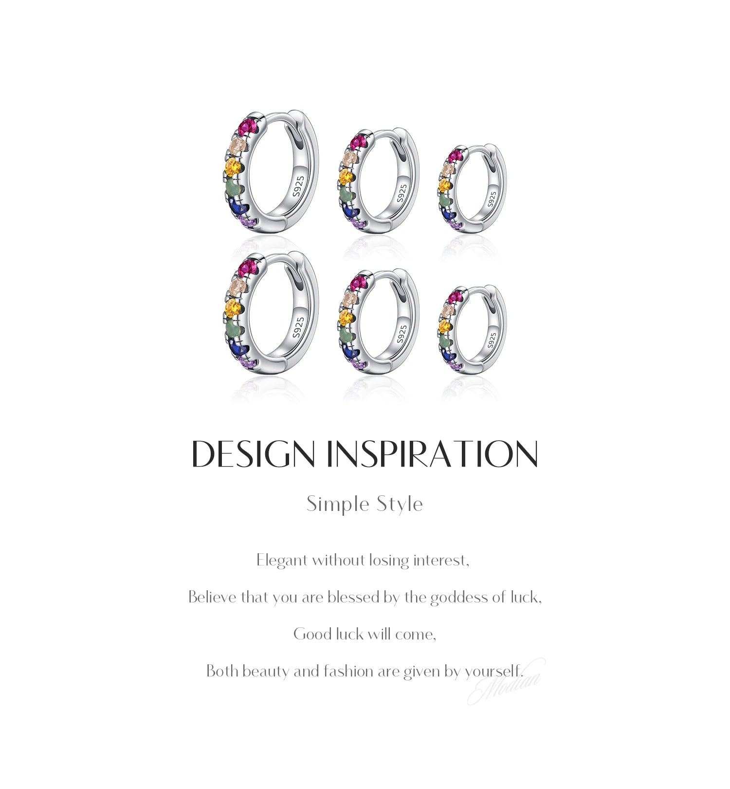 Modische Hoop Earrings in drei Größen, verziert mit funkelnden, rundgeschliffenen Zirkonia-Steinen in lebendigen Farben. Das stapelbare Design erlaubt vielseitige Looks von dezent bis auffällig und passt perfekt zu Alltag, Party oder besonderen Anlässen. Gefertigt aus 925 Sterling Silber, leicht und angenehm zu tragen, mit hochwertiger Verarbeitung.