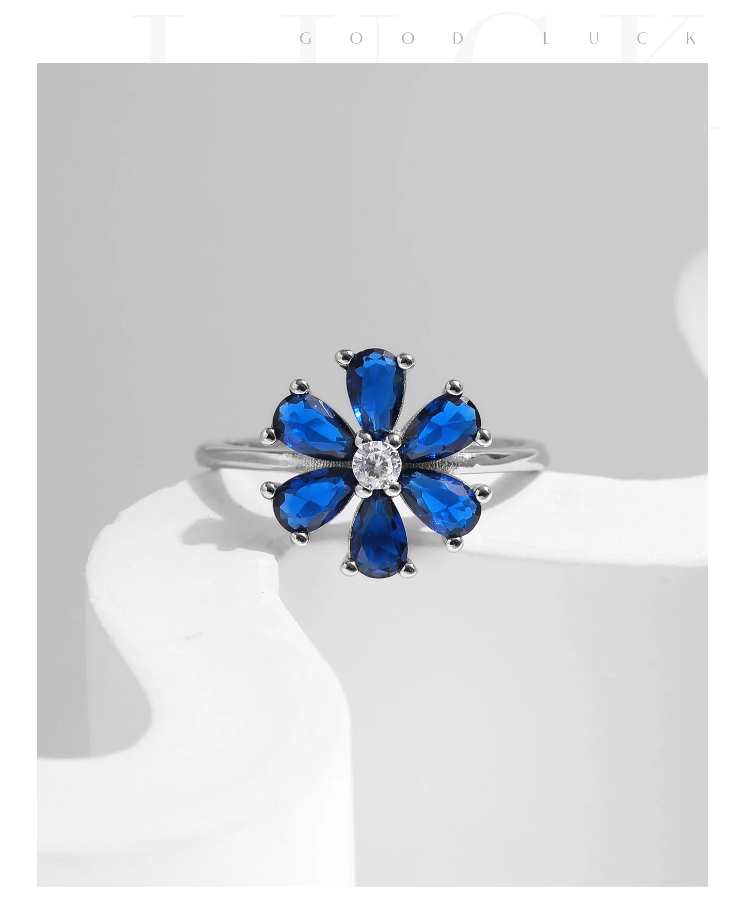Royal Azure Bloom – Exquisite Water Drop Ring