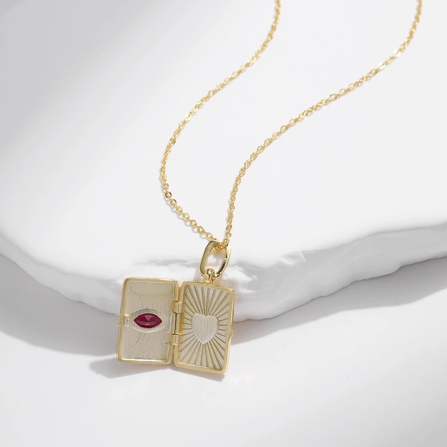 Lassen Sie Ihr Herz sprechen mit der Whispered Heart Necklace, einem zarten Liebesbrief in Schmuckform. Das offene Herz aus 925 Sterling Silver umrahmt ein leuchtendes rotes CZ-Auge, das Romantik und Leidenschaft symbolisiert. Ein feiner Kettenanhänger, perfekt für Frauen, die subtile Eleganz und persönliche Botschaften lieben.