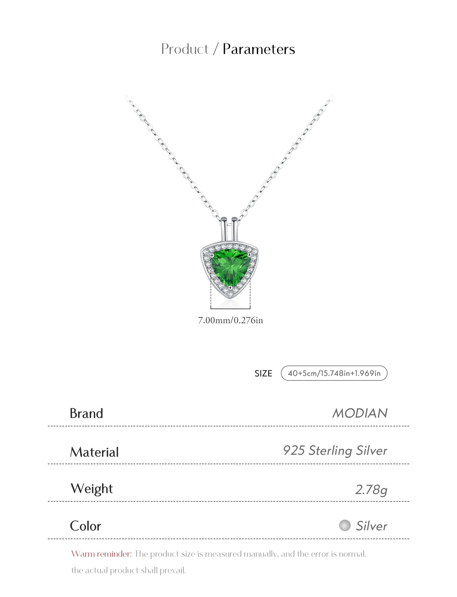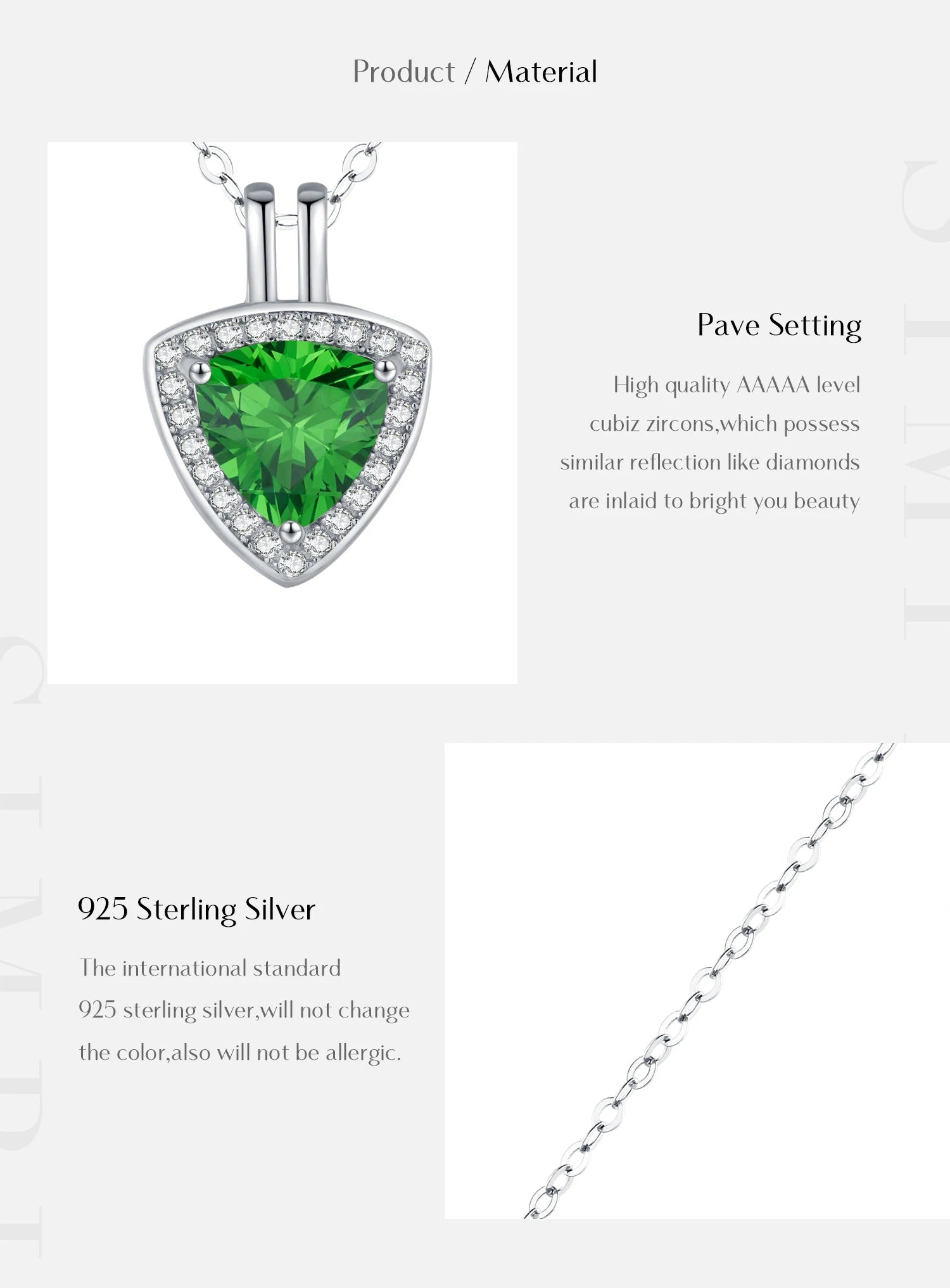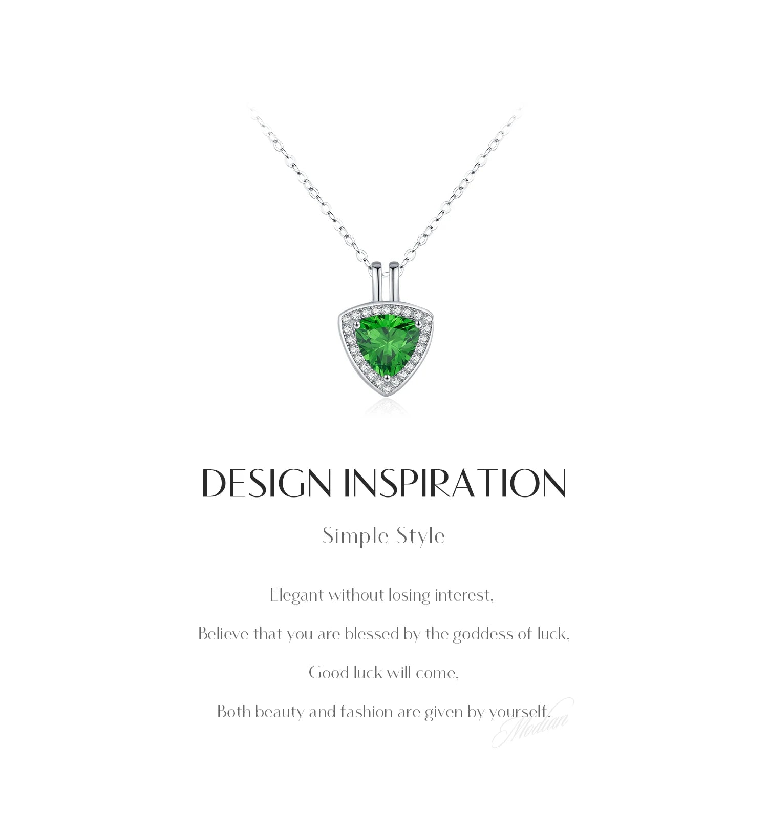Elegante Halskette mit modernem Dreiecks-Anhänger, veredelt mit einem leuchtend grünen Zirkonia. Das klare, geometrische Design verbindet urbane Minimal-Ästhetik mit feiner Eleganz und macht dieses Schmuckstück zum perfekten Akzent für Daily Looks, Partys oder elegante Anlässe. Gefertigt aus hochwertigem 925 Sterling Silber – zeitlos, stilvoll und vielseitig kombinierbar.