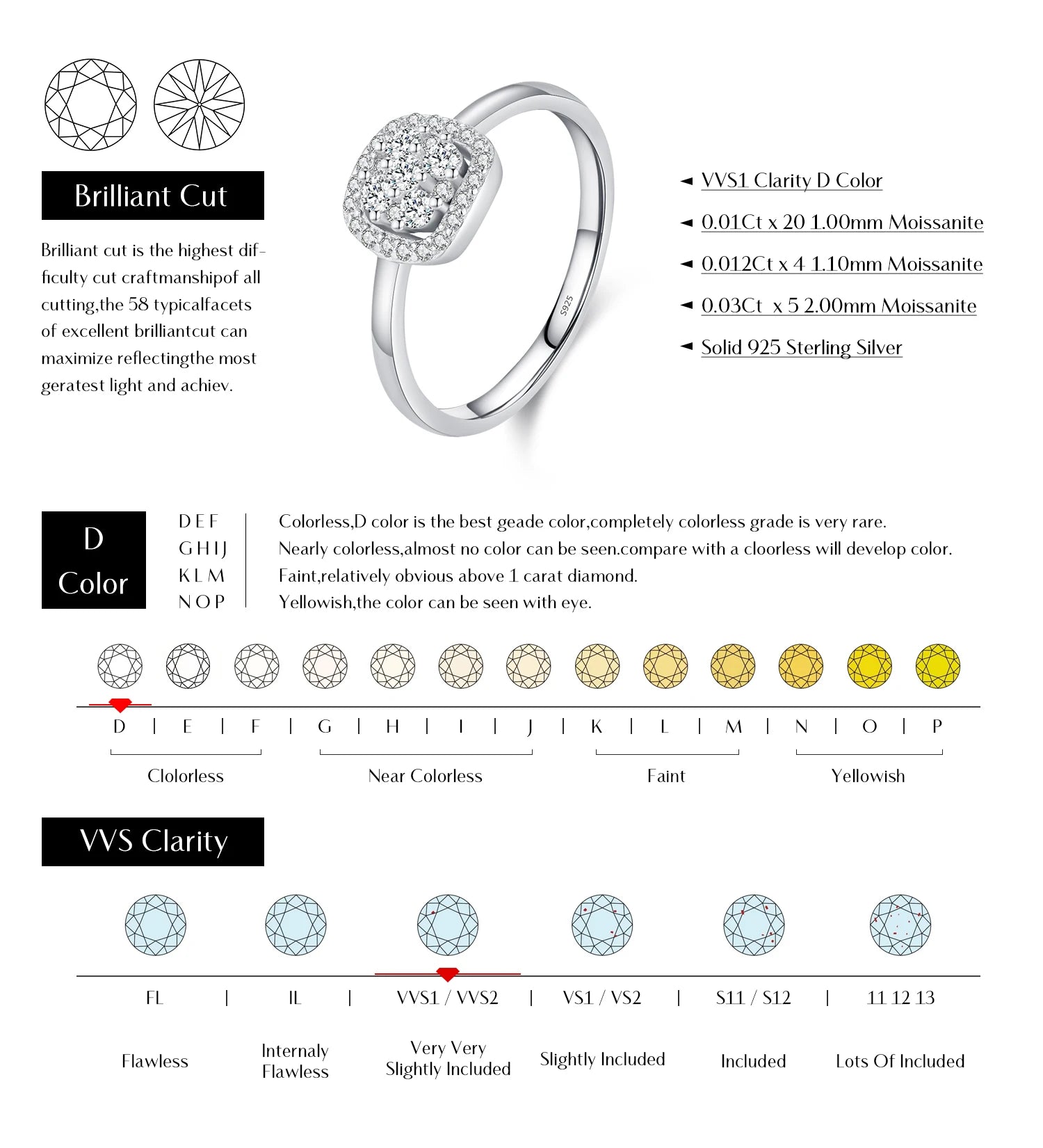 ✔ Hochwertiger D-Color Moissanit mit VVS1-Reinheit