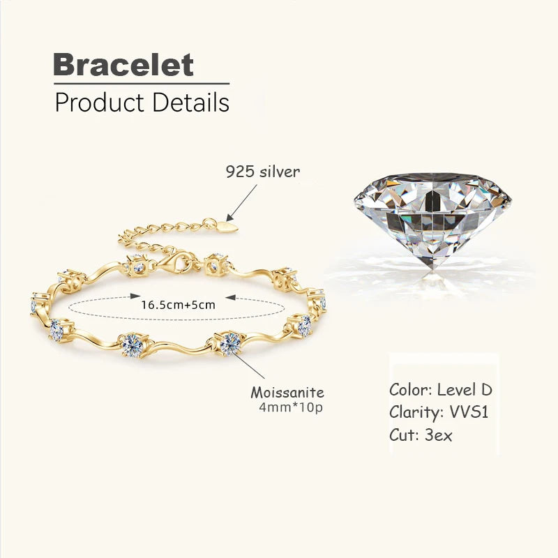 Elegant geschwungen und voller Leuchtkraft: Dieses luxuriöse Ribbon-Design Armband verbindet feminine Linien mit strahlenden 4mm Moissanite-Steinen.