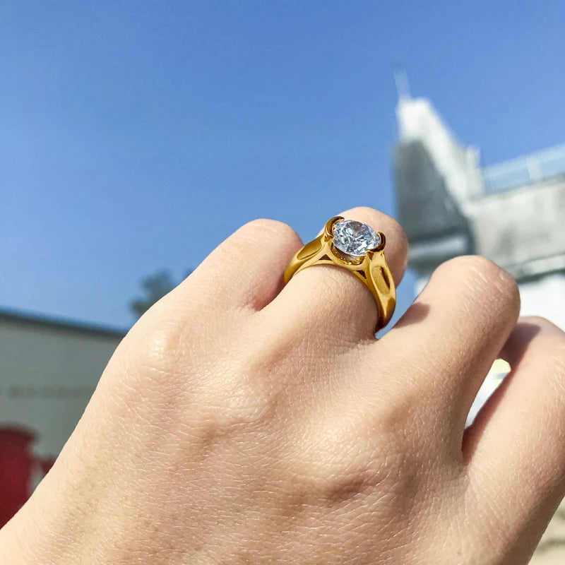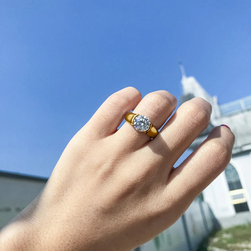 Eleganter Unisex-Ring mit funkelndem 2CT Moissanit in runder Solitärfassung. Das klassische Design verleiht dem Ring zeitlose Eleganz und macht ihn zur perfekten Wahl für Partys, Hochzeiten, Verlobungen, Valentinstag oder als stilvolles Geschenk. Gefertigt aus 925 Sterling Silber, wahlweise Silber- oder Gold-Finish, leicht und angenehm zu tragen, zertifiziert (GIC) und frei von bedenklichen Chemikalien.