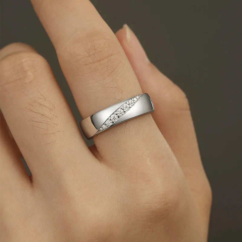 Der Ring besteht aus hochwertigem Moissanit und 925 Sterling Silber. Die Steine behalten ihre Brillanz über Jahre und machen den Ring zu einem langlebigen Schmuckstück. Gravuren können personalisiert werden.