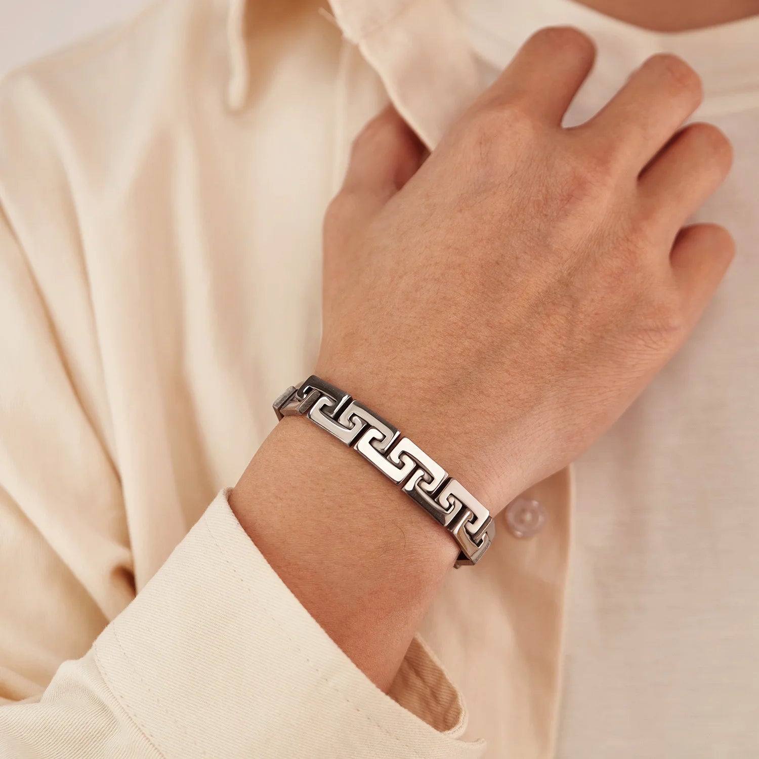 Das Urban Edge Armband vereint minimalistisches Geometrie-Design mit rebellischer Punk-Attitüde. Gefertigt aus hochwertigem Edelstahl, steht dieses Herrenarmband für Stärke, Individualität und modernen Street-Style.